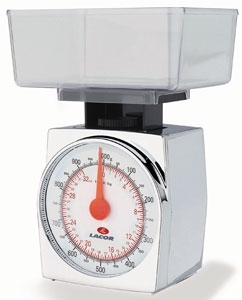 Capacité 1 kg précise à 5 grs. Corps plastique chromé. Plateau amovible. Tare réglable. Dimensions : H 19 x 10 x 8 cm.Garantie 1 an.