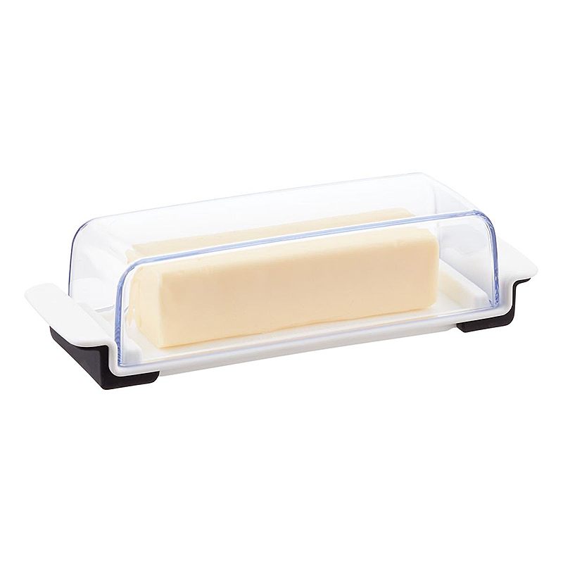 Ce beurrier est parfaitement adapté au stockage d'une motte de beurre de 250 grs ou à un bloc de 250 grs de fromage frais. Des butées de chaque côté du beurrier maintiennent le beurre ou fromage en place pendant la coupe. Le couvercle transparent repose parfaitement sur son support. La base du beurrier est anti-dérapante.