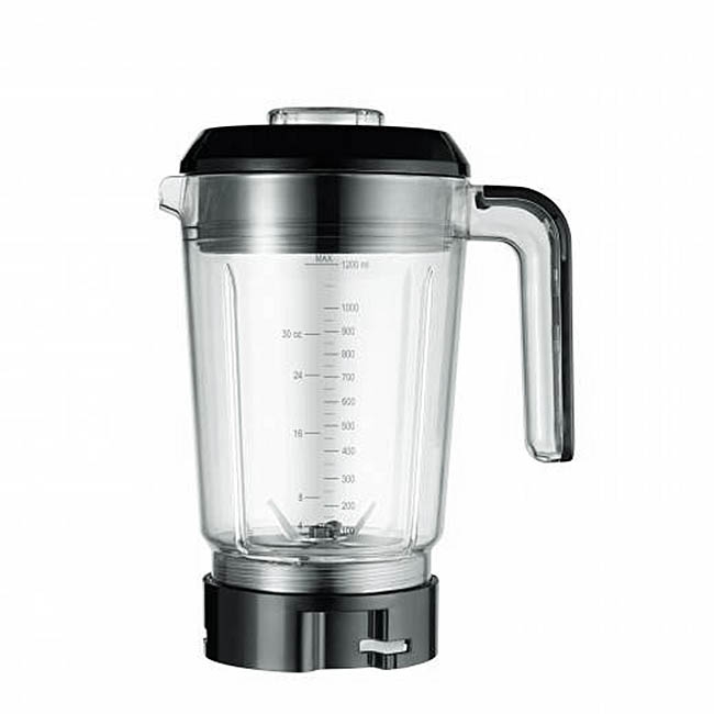 - 1 broc de mixage d'une contenance de 1,2 l en Tritan sans BPA avec ouverture de remplissage dans le couvercle et gobelet doseur intégré.