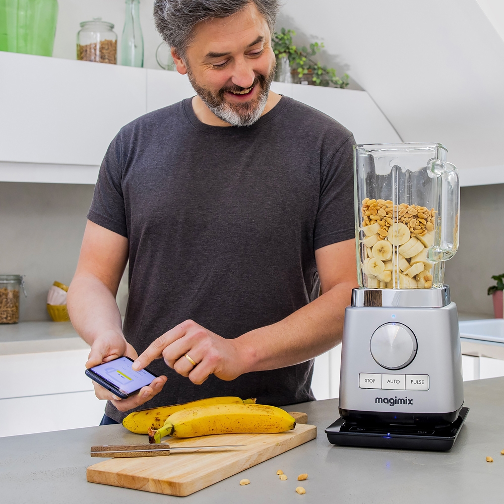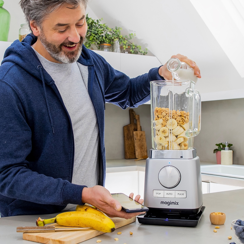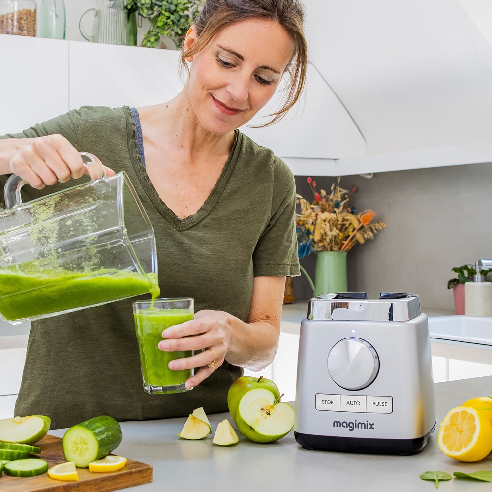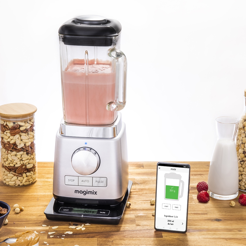 Le Blender Power 5XL Magimix et son puissant moteur de 1500 watts garanti 30 ans est particulièrement destiné à vous permettre de réussir la glace pilée, les smoothies, les soupes et desserts glacés ... Son bol en verre thermorésistant, son faible niveau sonore et son mode économie d'énergie vous accompagneront de nombreuses années dans la réalisation de vos préparations préférées.