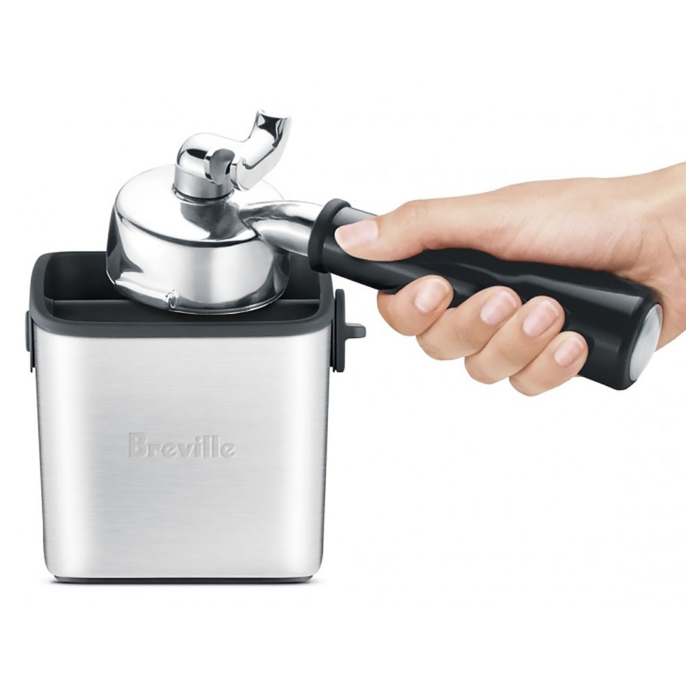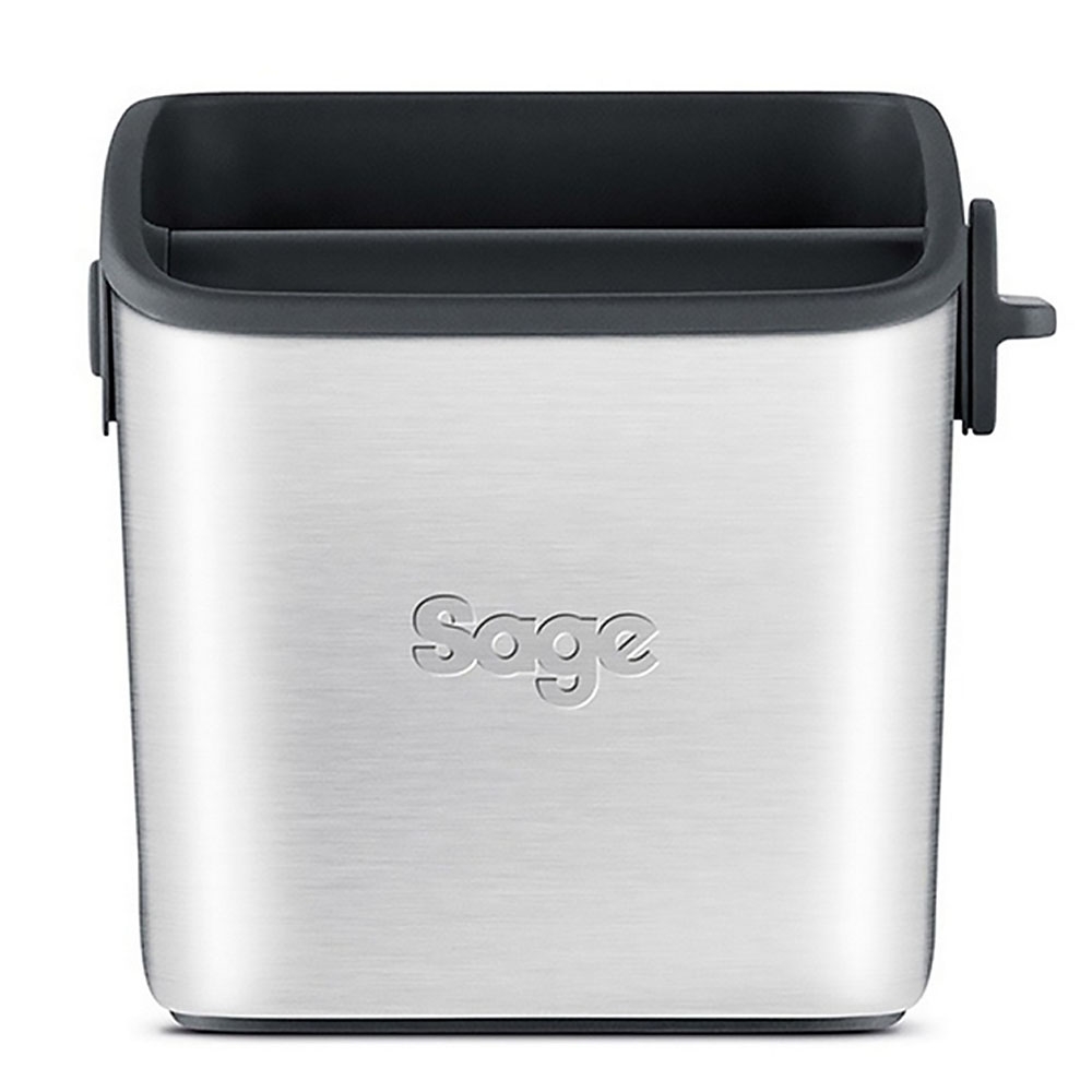 La Boîte à Marc de Café Sage est réalisée en plastique et aluminium brossé et possède une poignée amovible.