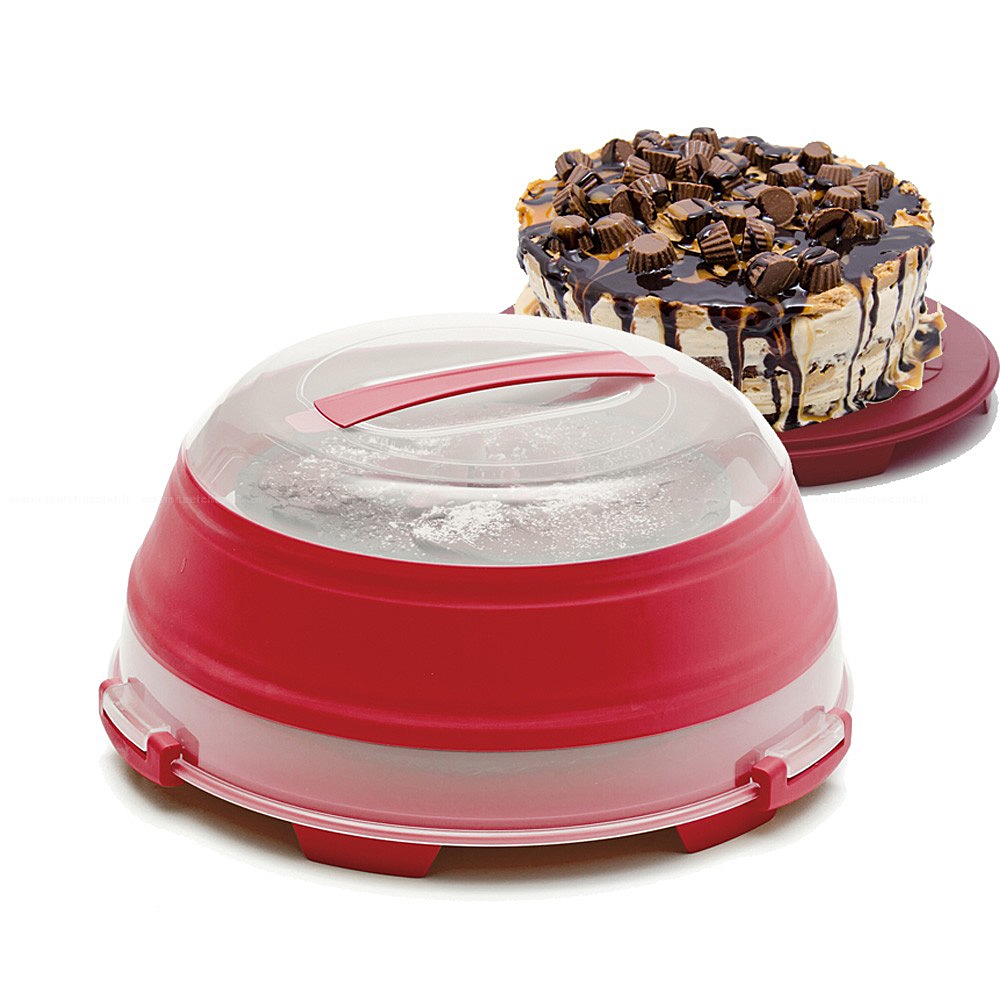 La boite de transport à gâteaux rétractable Progressive vous permettra de transporter facilement vos gâteaux et de les conserver à l'abri des bactéries. Le socle de la boite vous servira de marque parts pour des parts parfaitement homogènes. Se fermant grâce à trois clips, cette boite se rétracte de la moitié de sa hauteur pour vous permetrre de la stocker plus facilement. Munie d'une poignée pour le transport elle est compatible lave-vaisselle.