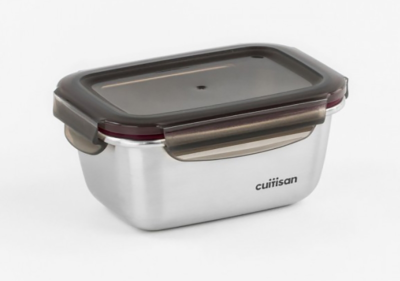 La boîte hermétique Cuitisan est en inox. Alors comme chez Cuisin’Store, on attache beaucoup d’importance à la qualité des matériaux, ça nous a interpellé. En plus, l’inox c’est un peu notre chouchou ! Sain pour les aliments, neutre pour le corps humain, supportant particulièrement bien la chaleur et se nettoyant très facilement, l'inox a tout pour plaire ! (Si vous voulez en savoir plus sur l'inox c'est par ici)