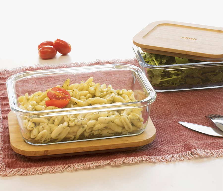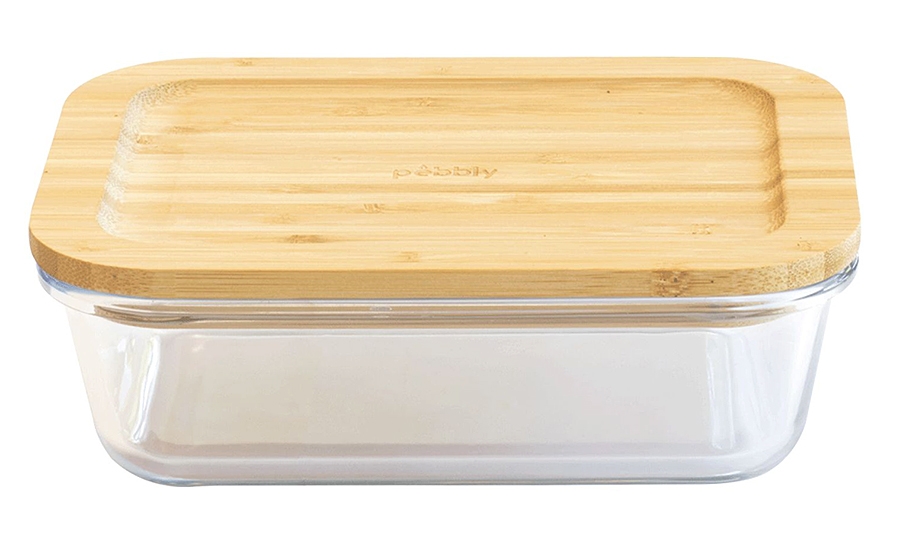 Descriptif Boîte hermétique Verre Rectangulaire avec Couvercle Bambou Pebbly