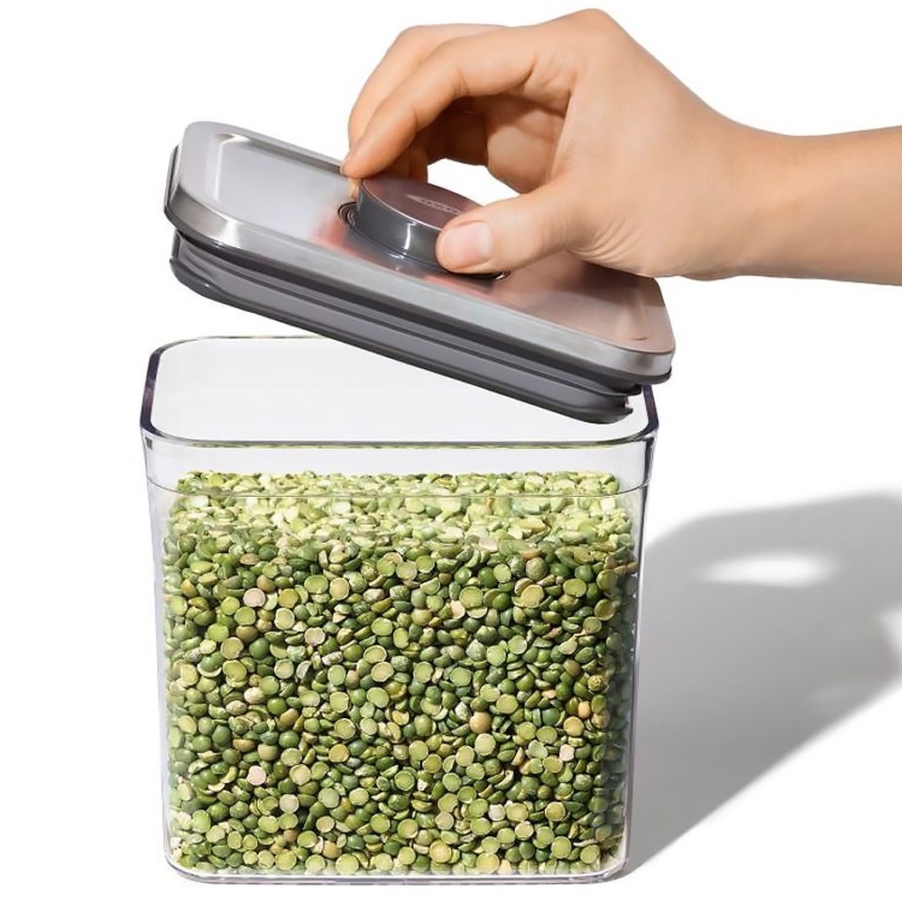 La Boîte Pop Steel 1,6 L Oxo est une boîte de conservation incontournable dans la cuisine. Elégante et raffinée avec son couvercle en inox, elle s'adapte à tous les styles notamment les plus contemporains. Toujours auusi pratique avec son bonton poussoir unique, rendant la boîte parfaitement hermétique et étanche, elle est utilisable par tous les âges (peu importe la taille de la main). Un jeu d'enfant ! Facile à nettoyer, le couvercle se démonte en retirant le joint afin de garantir une hygiène maximale.