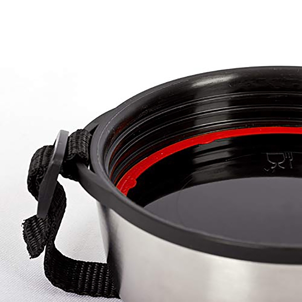Boîte alimentaire isotherme par vide d'air incassable en acier inoxydable d'une contenance de 1 litre possédant 2 compartiments et une cuillère inclue. Cette boîte permet de conserver au chaud durant 6 heures et au froid durant 24 heures. Elle possède une poignée escamotable très pratique.