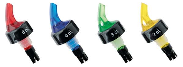 Matière plastique. Bille inox. Convient pour les alcools et autres liquides sauf l'anis et les sirops.