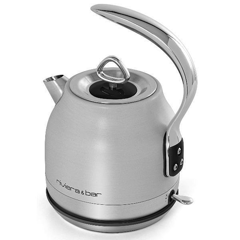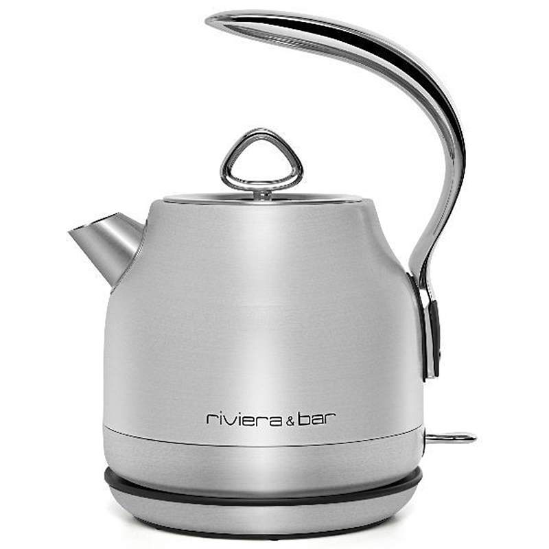 Bouilloire en inox aux lignes rafinées et épurées dotée d'une capacité utile de 1,25 litre avec système de chauffe très rapide. Sans fil avec base pivotante sur 360°, cette bouilloire dont tous les éléments en contact avec l'eau sont en inox possède un bouton de commande avec rétroécalirage bleuté et finition chromé, un couvercle et bec verseur en inox poli brillant, une anse galbée et une poignée en métal massif.