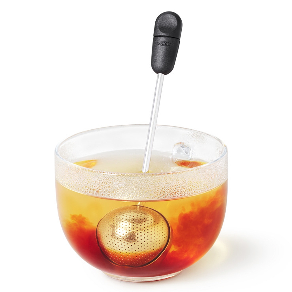 La Boule à thé rotative OXO s'adapte à tous types de tasses et mugs grâce à son long cou en inox.