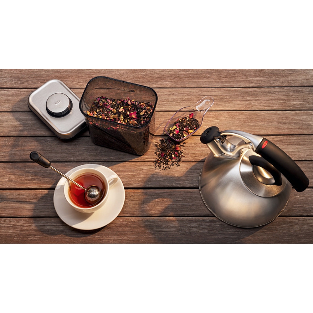 Cette Boule à thé OXO vous permet d'infuser aussi bien du thé que des herbes ou des épices, simplement en tournant le manche pour remplir et refermer la boule a thé.