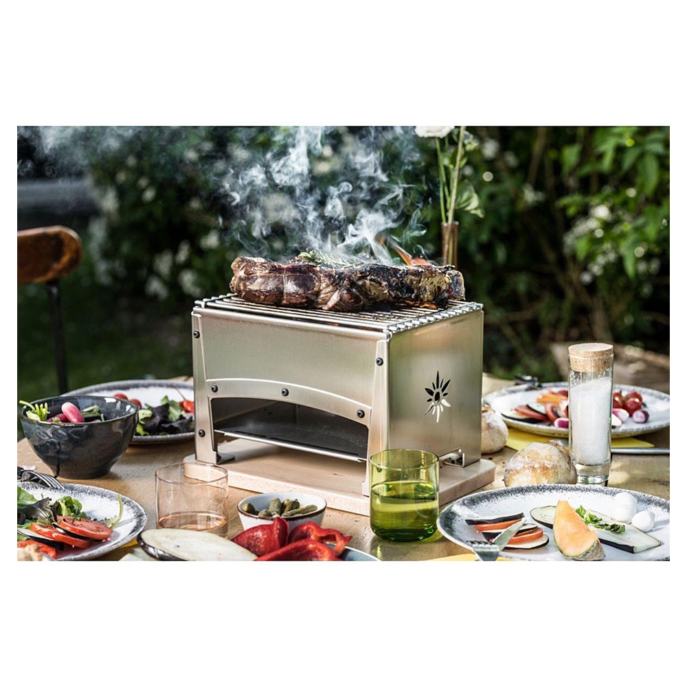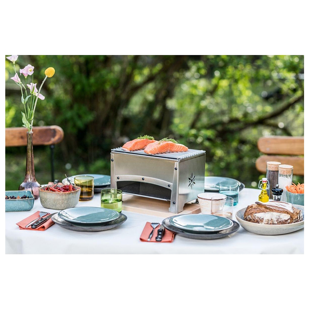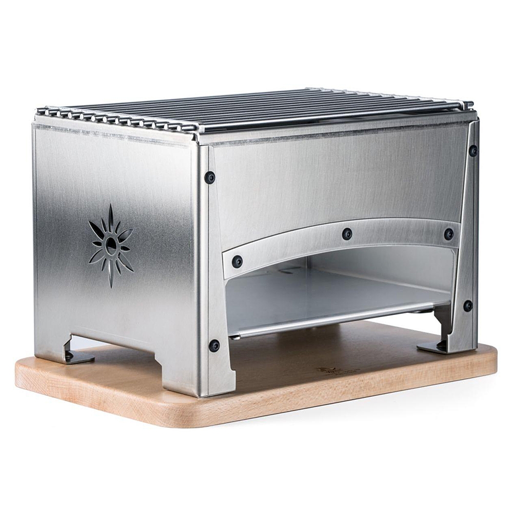 Réalisé en acier inoxydable 18/10, le Braséro Louis Tellier est idéal pour déguster des grillades et des reblochonades en intérieur. Fonctionnant avec du charbon de bois, il dispose d'un foyer amovible pour préchauffer la braise et est entièrement démontable pour un entretien aisé. Posé au milieu de la table, ce braséro permet à chaque convive de gérer sa propre cuisson.