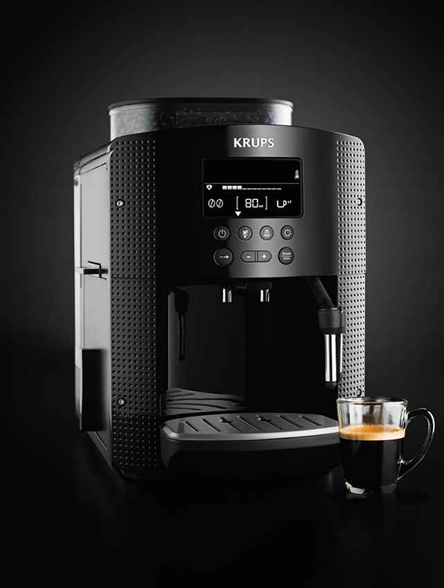 Conçue pour produire chez vous le café et l'espresso les plus purs et les plus puissants qui soient en toute simplicité, KRUPS ESSENTIAL est une machine à café à grain automatique compacte aux standards de qualité. Dégustez de délicieux expressos et cappuccinos d'exception chez vous. La machine à café broyeur grain automatique ESSENTIAL KRUPS vous offre un large choix de fonctionnalités. Grâce à l'écran LCD très intuitif, le contrôle précis s'offre à vous, avec trois niveaux de température et trois finesses de broyage des grains pour des boissons sur mesure. Son mode "mémo" pratique enregistre vos paramètres préférés pour obtenir des résultats parfaits à chaque utilisation.