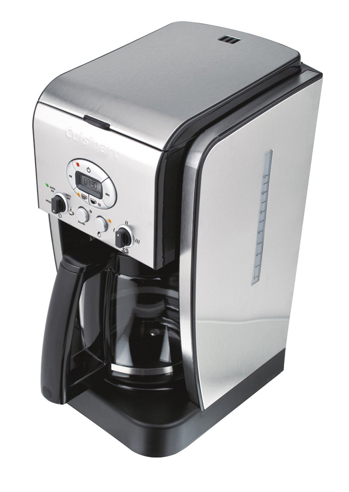 La cafetière filtre Cuisinart DCC2650E vous permet de réaliser de délicieux cafés en grande quantité avec sa grande verseuse de 1.8 L. De plus vous pouvez choisir votre puissance de café : moyen ou fort, ainsi que sélectionner l'intensité de l'arôme. 3 températures de maintien au chaud sont possibles. De plus, la cafetière possède un programme spécifique de nettoyage ainsi qu'une alerte entartrage. Le filtre à eau permet cependant de limiter cet entartrage et la quantité de chlore. L'arrêt automatique se fait à la fin du cycle par un signal sonore. Le niveau d'eau est visible. Le plus : vous pouvez programmer 24h à l'avance votre cafetière pour que votre café soit déjà prêt à l'heure voulue !