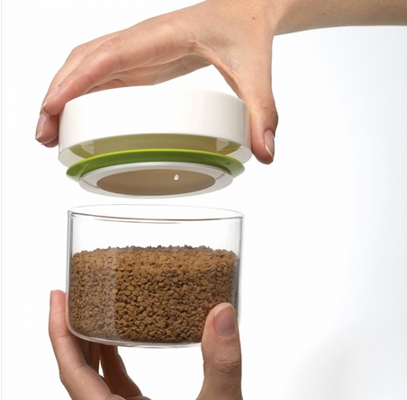 Le carrousel pour aliments secs Joseph Joseph permet de conserver de manière efficace, riz, pâtes, lentilles, haricots secs... Tous les pots sont en verre et fermés par un couvercle avec un joint en silicone, ce qui les rend parfaitement étanches. Le système est compact, les pots étant empilables sur un plateau rotatif de dimensions réduites.