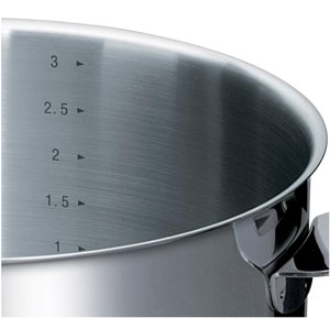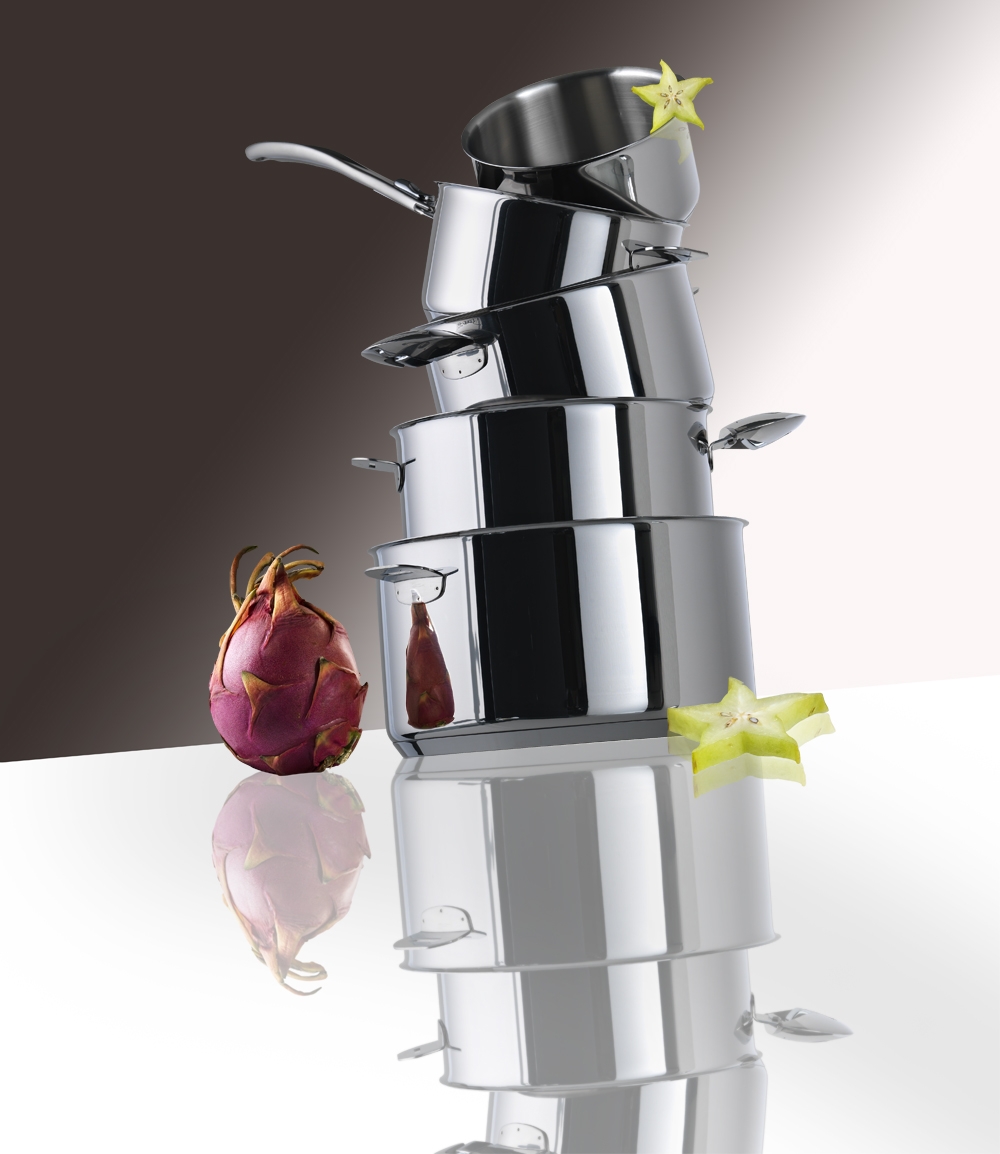 Inox 18/10 garanti 25 ans. Triple fond encapsulé très épais 6.2 mm. Bord verseur. Finition extérieure polie miroir. Va au four et au lave vaisselle. Tous feux y compris induction. Qualité professionnelle. Manche et anses en fonte inox amovibles vendus séparément.