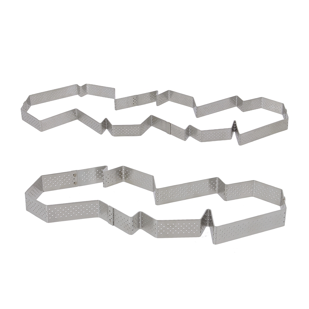 Forme originale en acier inoxydable perforé. Multiparts ( 4 ou 6 parts ). Hauteur 2 cm, Epaisseur 1 mm.