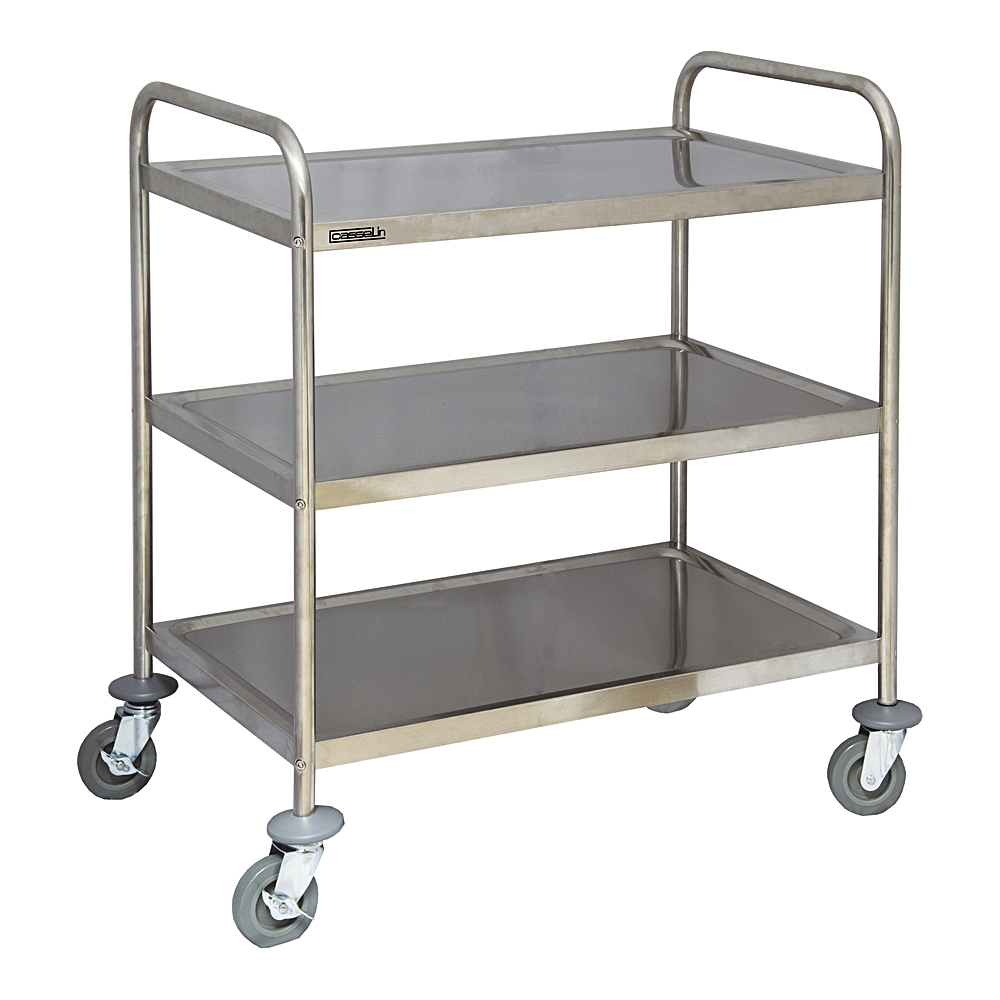 Les chariots en acier inoxydable Casselin possèdent 2 ou 3 plateaux, 4 roues directionnelles dont 2 avec freins. Avec leur charge utile de 120 kgs, ils vous permettront de stocker et de déplacer facilement toutes sortes d'ustensiles de cuisine ou de salle.