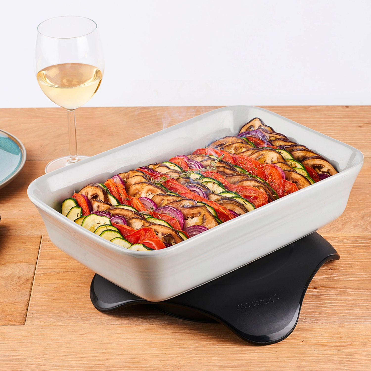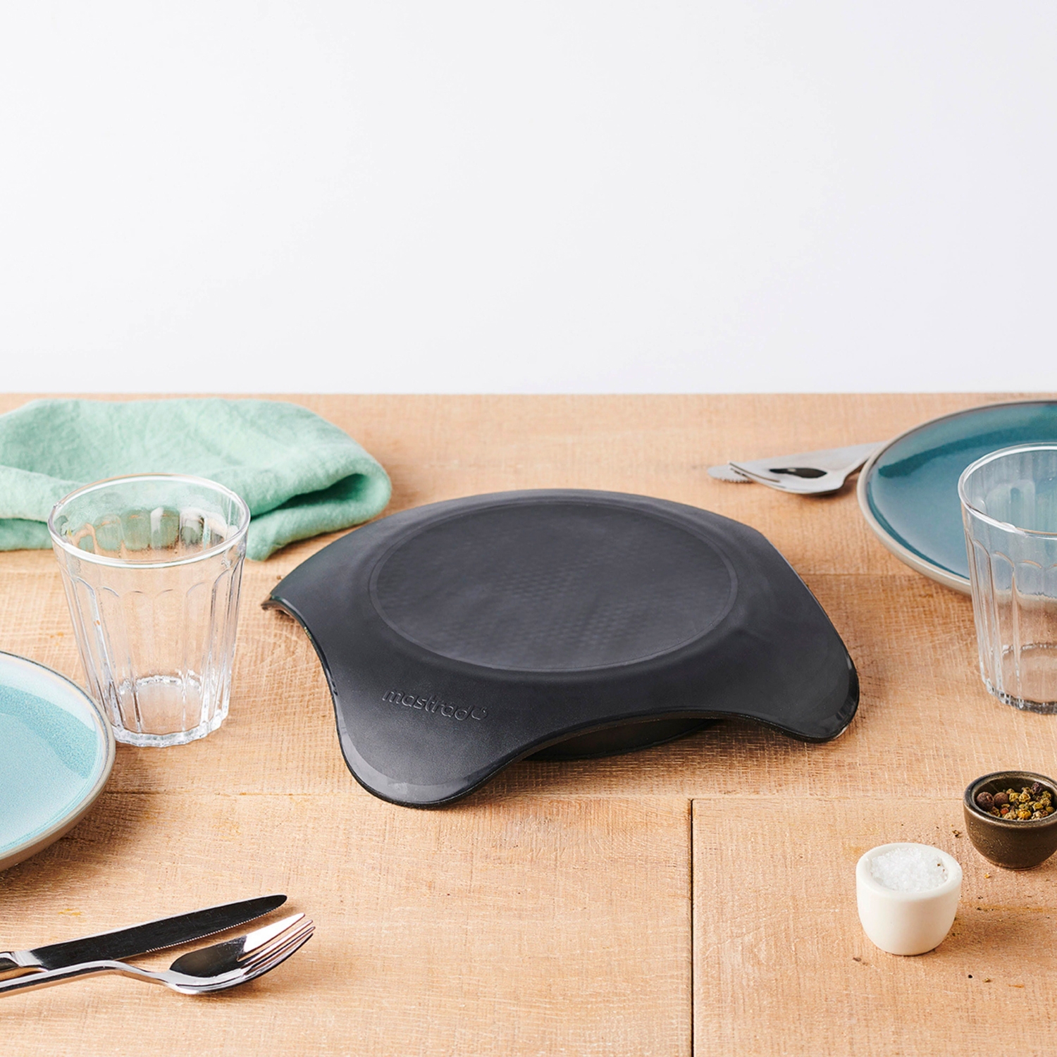Le chauffe plat micro-ondes Mastrad enmagasine la chaleur lors de son passage au micro-ondes et la restitue progressivement dans le temps à travers son enveloppe faite de polymères haute température et silicone.