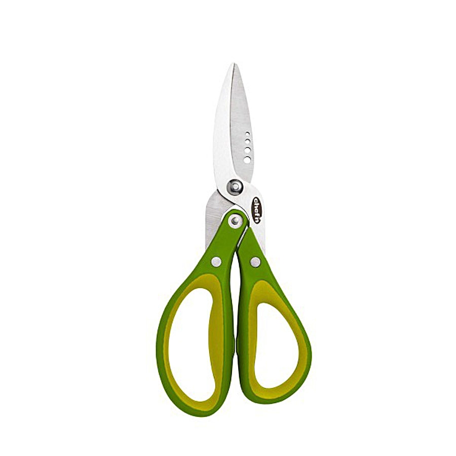 Les Ciseaux à Herbes Chef'n vous permettront de couper et hacher les herbes fraîches, choux frisés et autres légumes verts. Vous séparerez les tiges ligneuses des herbes aromatiques avec l'outil adapté. Un mécanisme à double engrenage accroit l'effet de levier. Poussez les poignées en position horizontale pour les séparer et les nettoyer.