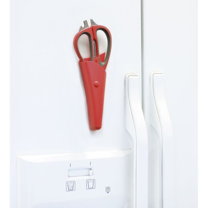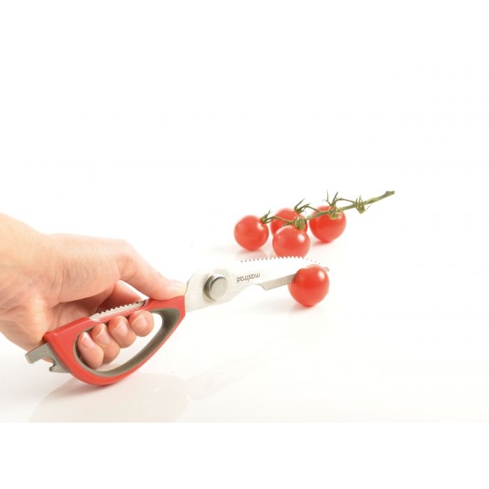 Les ciseaux multifonctions Mastrad peuvent être utilisés en ciseaux ou en couteaux lorsque les lames sont désassemblées. Ils sont équipés d'un étui de rangement magnétique.