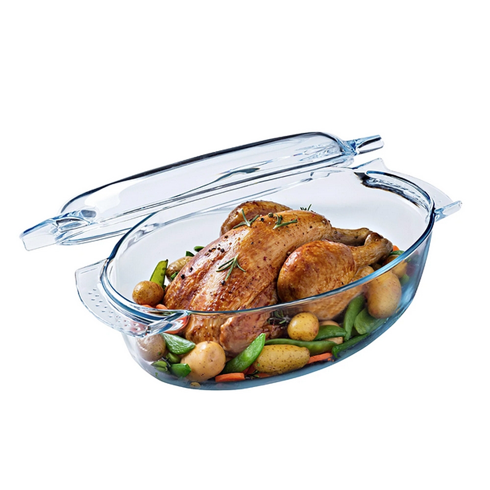 La Cocotte Ovale Pyrex permet d'envisager toutes les possibilités de cuisson : mijotées, à l'étouffée, rôtie... Grâce à son couvercle et à la vapeur qu'il conserve, la cocotte permet une cuisson douce et lente afin de préserver les qualités des aliments. Réalisée en verre borosilicate elle supporte des températures allant de - 40°C à + 300°C. Elle est munie de poignées à grip facilitant une bonne prise en main à la sortie du four et ce même avec des maniques.