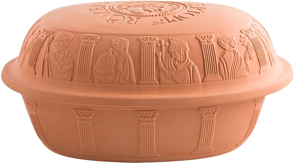 Une fois imbibée d'eau, la cocotte Romertopf permet de cuire à la vapeur au four sans ajout de matière grasse et même de liquide mais avec un effet doré comme pour une cuisson traditionnelle.