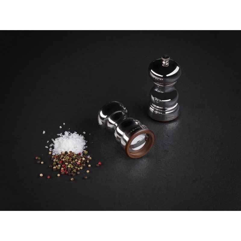 Acier inoxydable. Mécanisme acier carbone pour le poivre et céramique pour le sel. Garantie 2 ans. Mécanisme garantie à vie. Hauteur : 12cm.