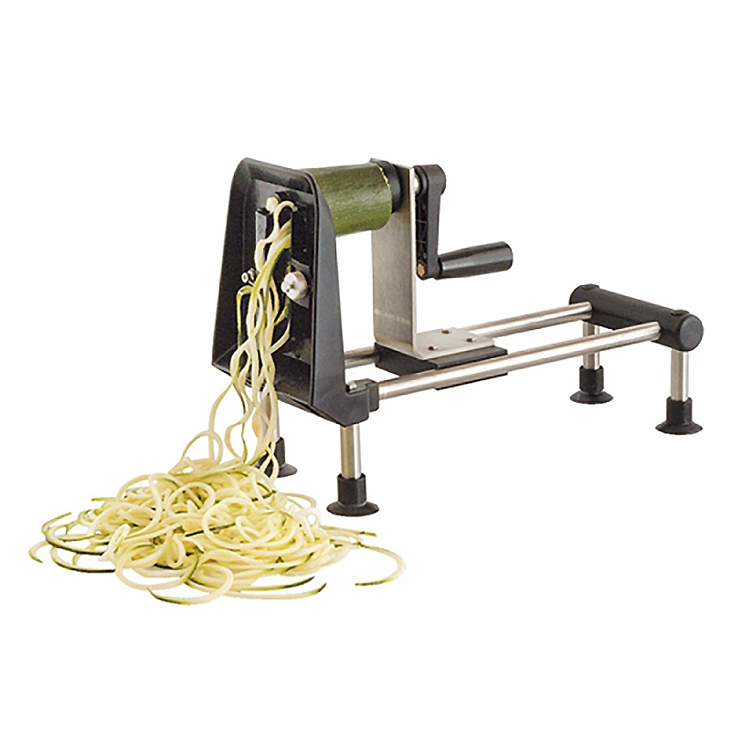 Le coupe-légumes Le Rouet Gourmet transforme vos fruits et légumes (pommes de terre, carottes, navets, courgettes, concombres, radis noirs…) en spaghettis, tagliatelles ou guirlandes. Idéal pour faire des présentations de crudités ou pour décorer de façon originale vos plats ou desserts.