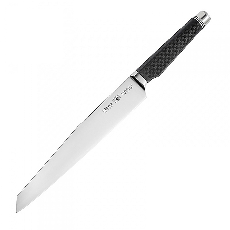 Le Couteau de découpe FK2 De Buyer permet la découpe de fines tranches de viandes rôties, jambon… Sa lame est conçue pour offrir le moins de résistance possible, ce qui facilite les coupes en longueur.