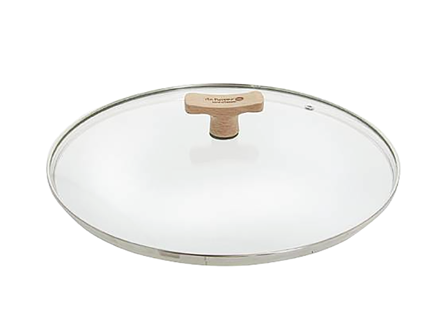 Couvercle en verre cerclé d'inox s'adaptant entre autre sur les sauteuses (poêles paysannes) et les woks des gammes Mineral B Bois de et CHOC B BOIS. Le joli bouton en bois de hêtre issu de forêts Vosgiennes est certifié PEFC. La hauteur du bouton permet de l'aggriper, puis de le basculer pour le poser facilement sur le plan de travail. Indispensable pour laisser mijoter les petits plats ou maintenir au chaud les préparations.