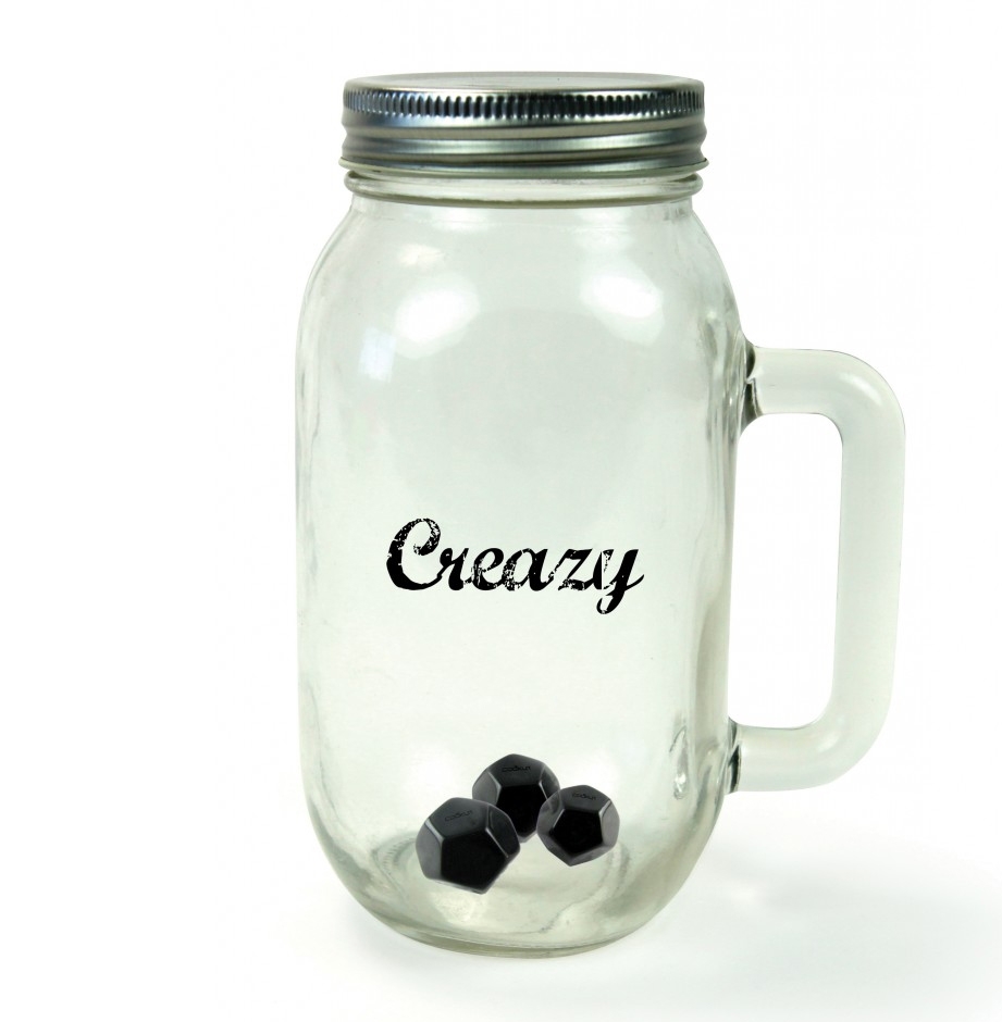 Creazy se compose d'un bocal en verre et de 3 billes pour pouvoir réaliser le plus simplement du monde une délicieuse chantilly maison. Il suffit de placer dans le bocal de la crème et du sucre, de secouer pendant une minute, c'est prêt ! Le secret du système réside dans la forme très étudiée des billes silicone capable de créer une émulsion parfaite pour obtenir une chantilly bien ferme. Celle-ci peut ensuite être conservée dans le bocal placé au réfrigérateur.