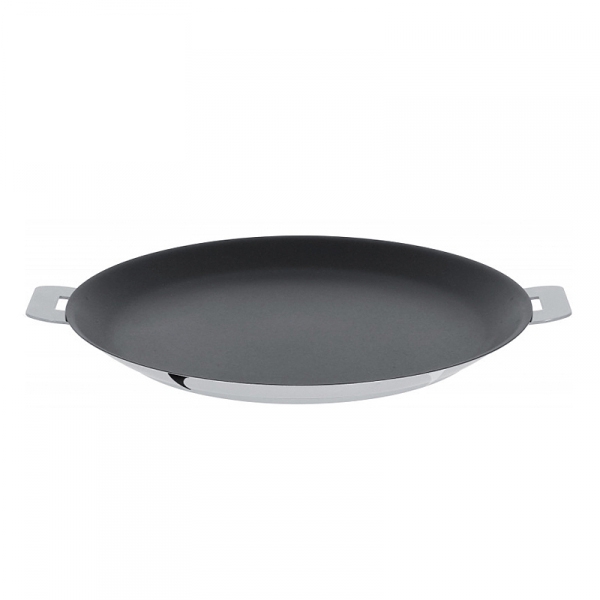 Elle est réalisée dans un inox 18/10 massif et est équipée d'un fond triple épaisseur garantissant un rendement thermique exceptionnel. Elle est équipée d'un revêtement antiadhésif renforcé inox : une projection de métal en fusion crée une surface structurée qui intègre l'antiadhésif, le tout formant un ensemble homogène et durable.