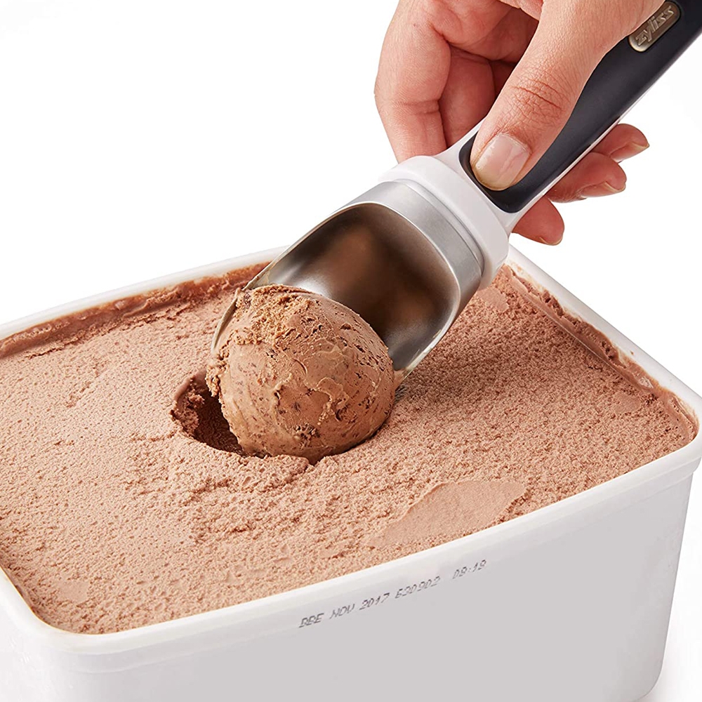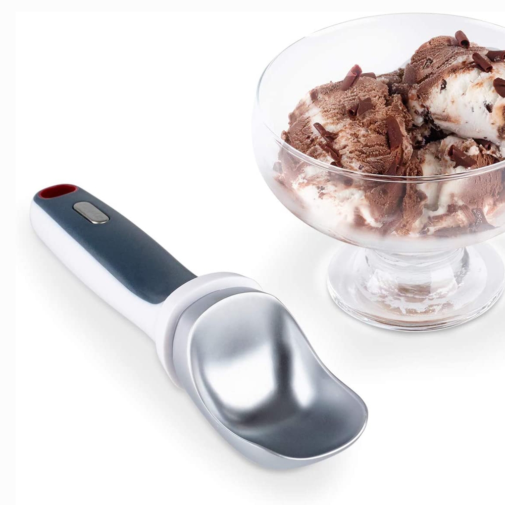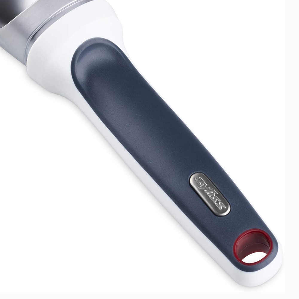 La Cuillère à glace Zyliss est parfaitement équilibrée et possède un manche ergonomique en plastique blanc avec orifice d'accrochage et dont la partie portionneuse est conçue pour s'enfoncer facilement dans la glace la plus dure. Cette cuillère est garantie 5 ans et se nettoie facilement au lave-vaisselle.