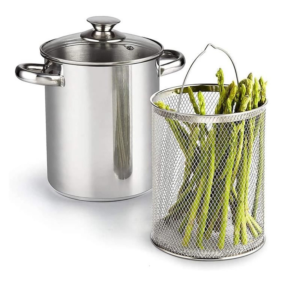 Grâce à sa forme haute, le cuit asperges permet de cuire les asperges debout en les ébouillantant à la base tout en cuisant les têtes plus fragiles grâce à la vapeur dégagée. Il peut également être utilisé comme cuit pâtes.
