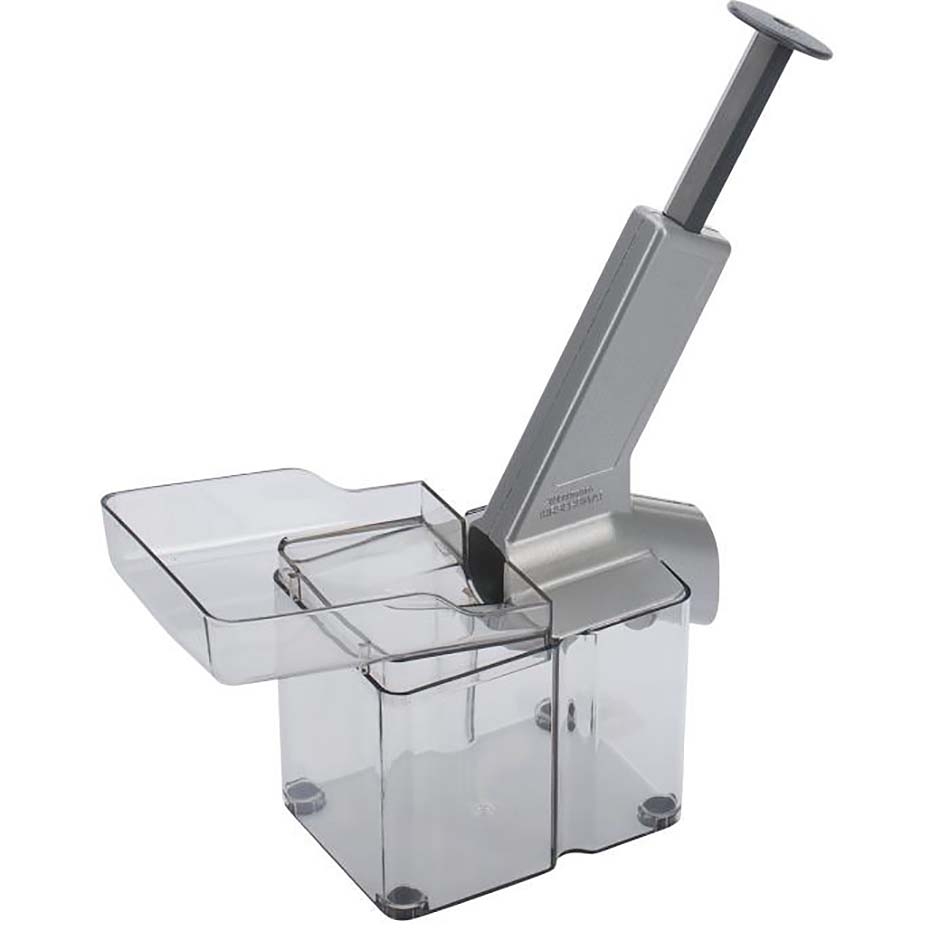 Corps en fonte d'aluminium. Revêtement spécial alimentaire. Réservoir plastique amovible. Lames Capacité de dénoyautage 15 kg/heure. Protection anti-éclaboussures. Dimensions : 35 x 22,5 x 10 cm. Garantie 5 ans.