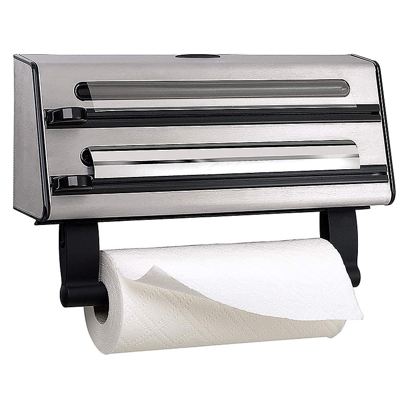 Le dérouleur mural EMSA assure une coupe parfaite et nette du papier aluminium, du film alimentaire et du papier sulfurisé, ceci dans les deux sens (de gauche à droite et de droite à gauche). Il garantit une manipulation sûre grâce aux molettes de coupe masquées et une utilisation facile grâce à la fixation automatique de la feuille lors de la coupe. Il se recharge facilement et s'utilise également sans le support de rouleaux essuie-tout.
