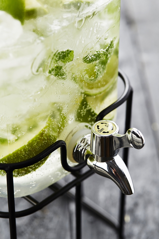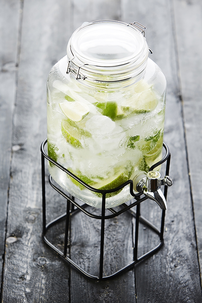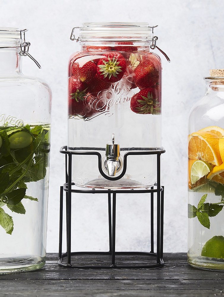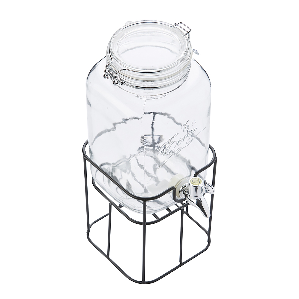 Distributeur de boissons fraîches ou chaudes en verre de forme carrée d'une contenance de 3,6 litres. Idéal pour présenter vos sangrias, puch, limonades maison mais aussi toutes sortes de coktail et vins chauds. Livré avec son support en métal.
