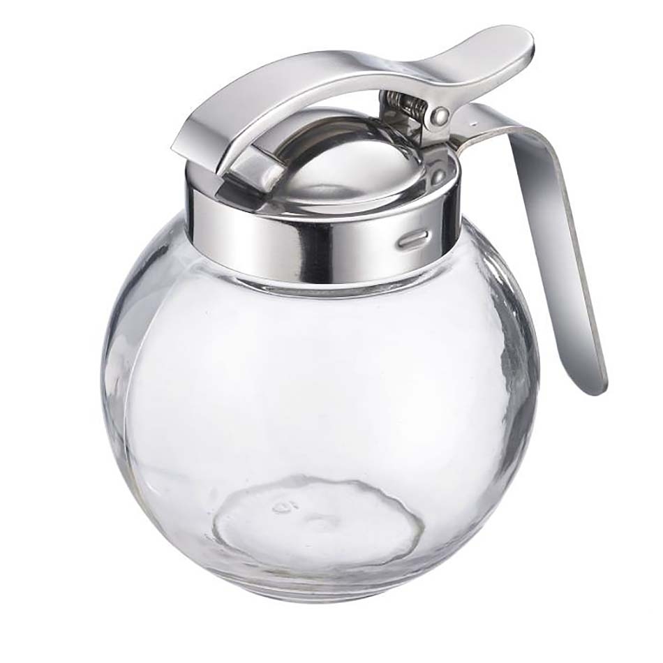 En verre. Couvercle en inox. Capacité 250 ml. Va au lave vaisselle.