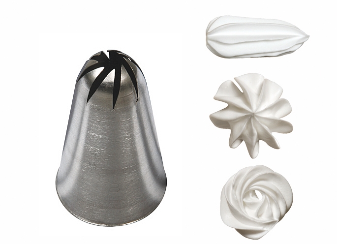 La Douille à Rose en acier inoxydable De Buyer possède 8 dents de même taille, même forme et un espace entre elles constant pour vous permettre de réaliser des roses, décors et meringues en crème avec des résultats homogènes et de qualité. Indéformable et robuste, elle résiste aux hautes températures. Sa finition très soignée vous garantit un travail très fin et un résultat visuel exceptionnel. Passe au lave-vaisselle.