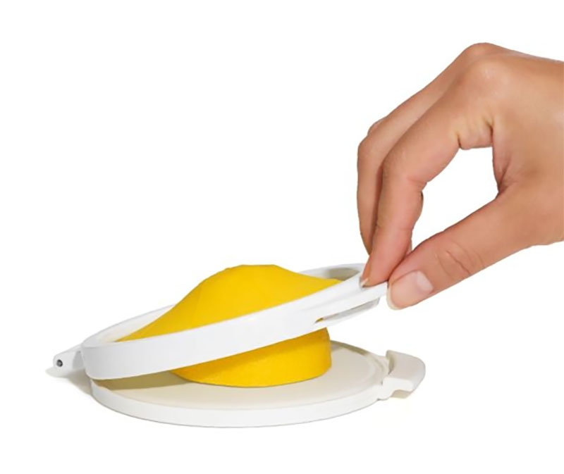 Beaucoup de recettes ne nécessitent souvent qu'une moité de citron. Pour conserver l'autre moitié, il n'existait alors que la solution de l'emballer dans un papier alimentaire (plastique ou alu) ou encore de le placer dans une boîte. Grâce à cet astucieux ustensile, il existe maintenant une nouvelle alternative !