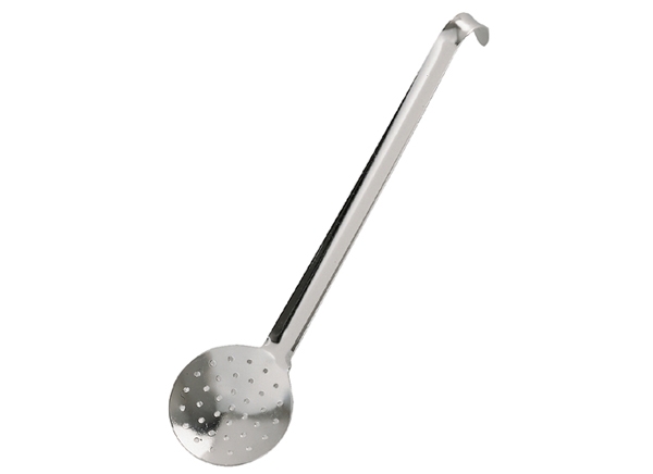 Inox 18/10. Perforations avec finition soignée. Manche ergonomique. Crochet multi-supports. Va au lave vaisselle.