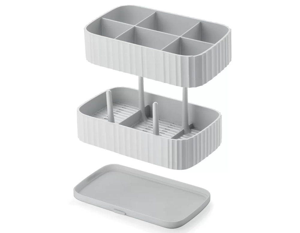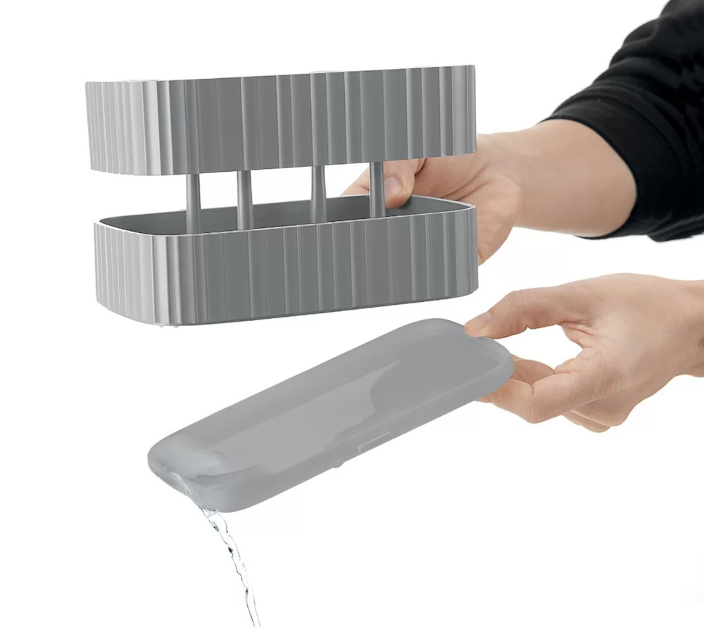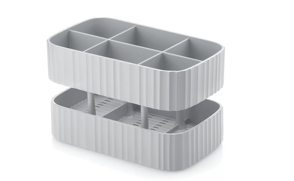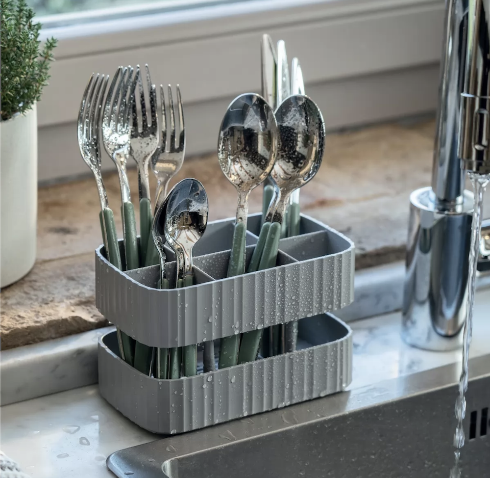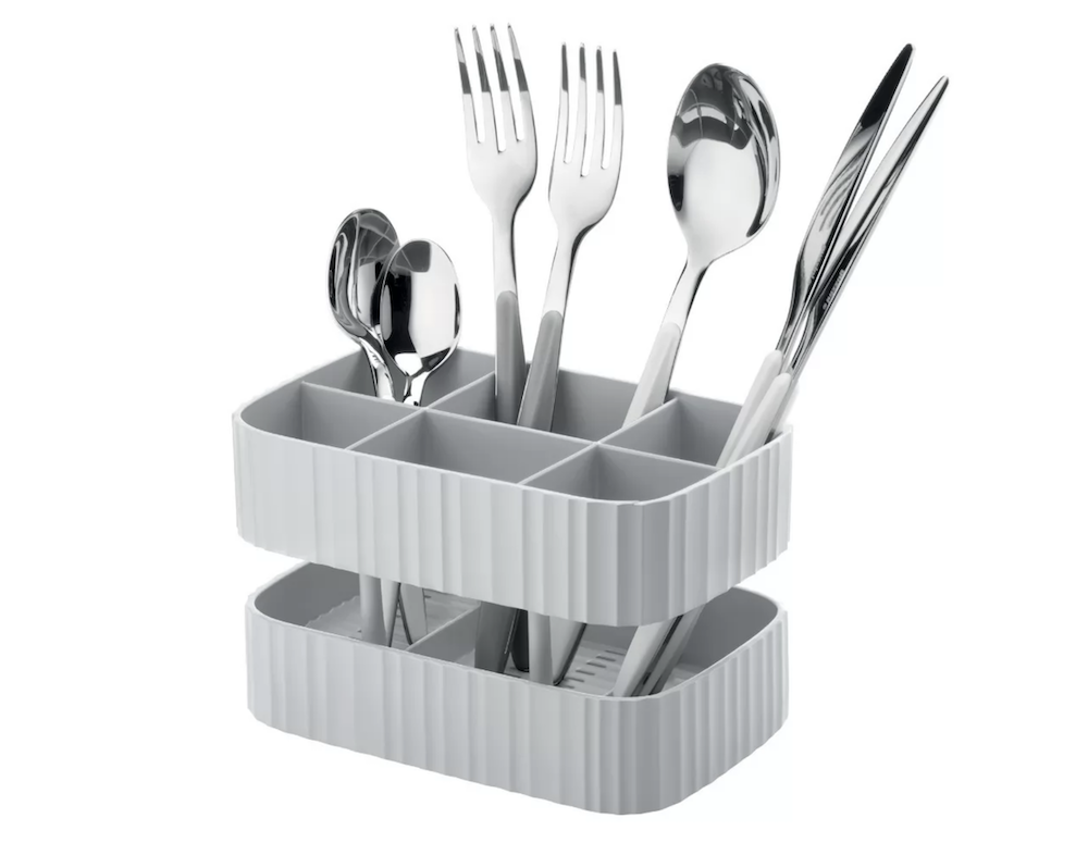 L'égouttoir à couverts Guzzini est composé de plastique recyclé et antibactérien. Très pratique, il permet d'égoutter vos couverts facilement. Il se démonte en 3 pièces pour un nettoyage simple, et est également équipé d'un bac de récupération d'eau.