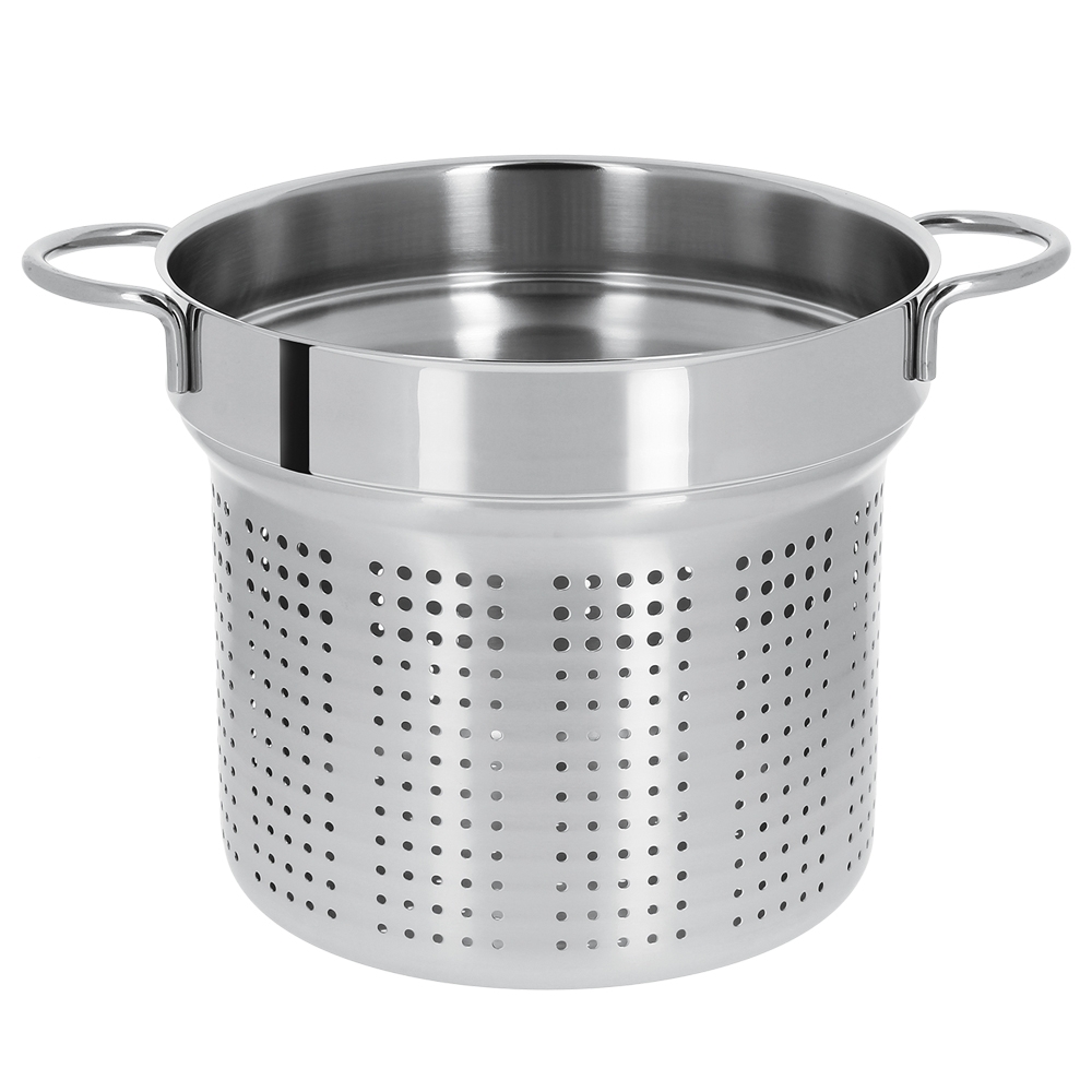 Réalisé en acier inoxydable 18/10, l"Elément Cuit-Pâtes Inox Mutine Fixe Cristel s'adapte aux marmites Cristel et permet de cuire les pâtes dans les règles de l'art en préservant les qualités gustatives des aliments. Possédant des anses en fil d'inox soudées, il peut-également servir à la cuisson des asperges.