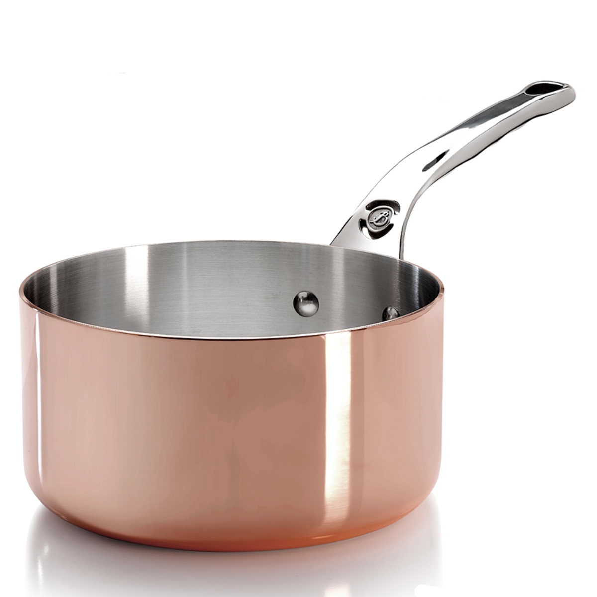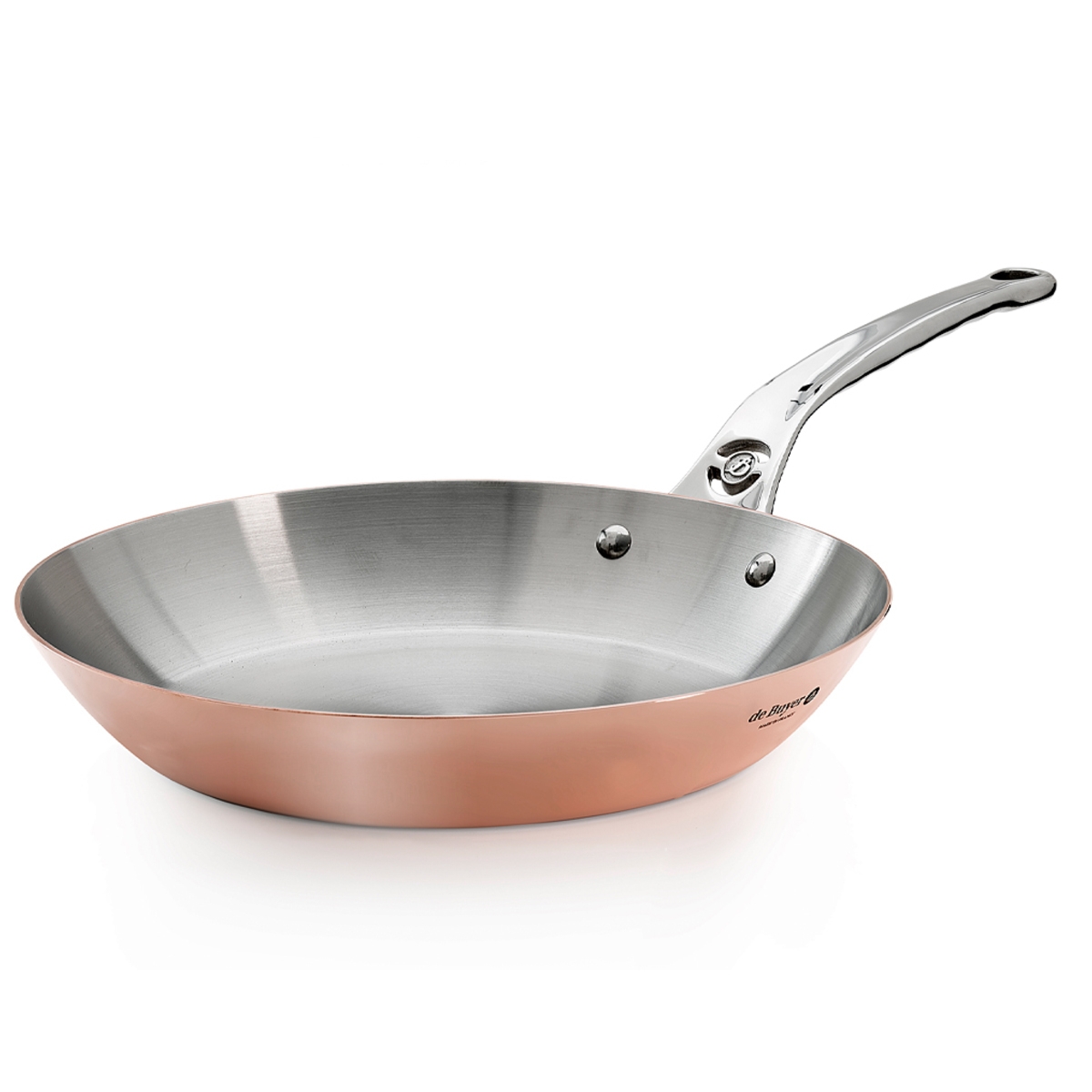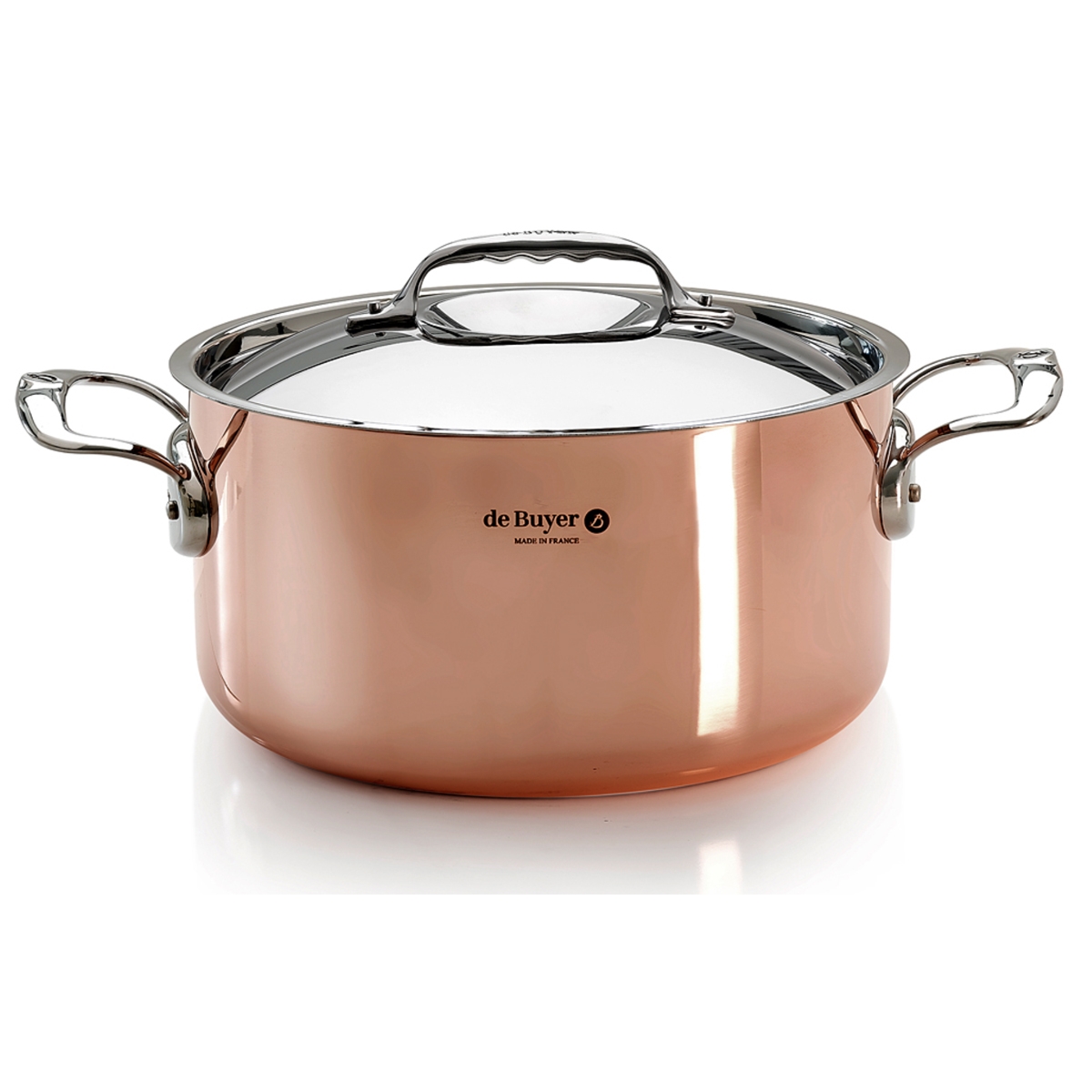 Cuivre épaisseur 2 mm. Finition poli brillant. Fond spécial induction en inox ferro-magnétique. Intérieur inox. Pour toutes sources de chaleur, tous feux y compris induction. Manche et anses ergonomiques rivetées en fonte d’inox. Lavage au lave vaisselle possible mais non conseillé.