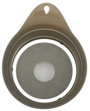 Silicone alimentaire. Base et bouchon en nylon. Grille tamis inox. Va au lave-vaisselle. Dimensions : Longueur : 17 cm.