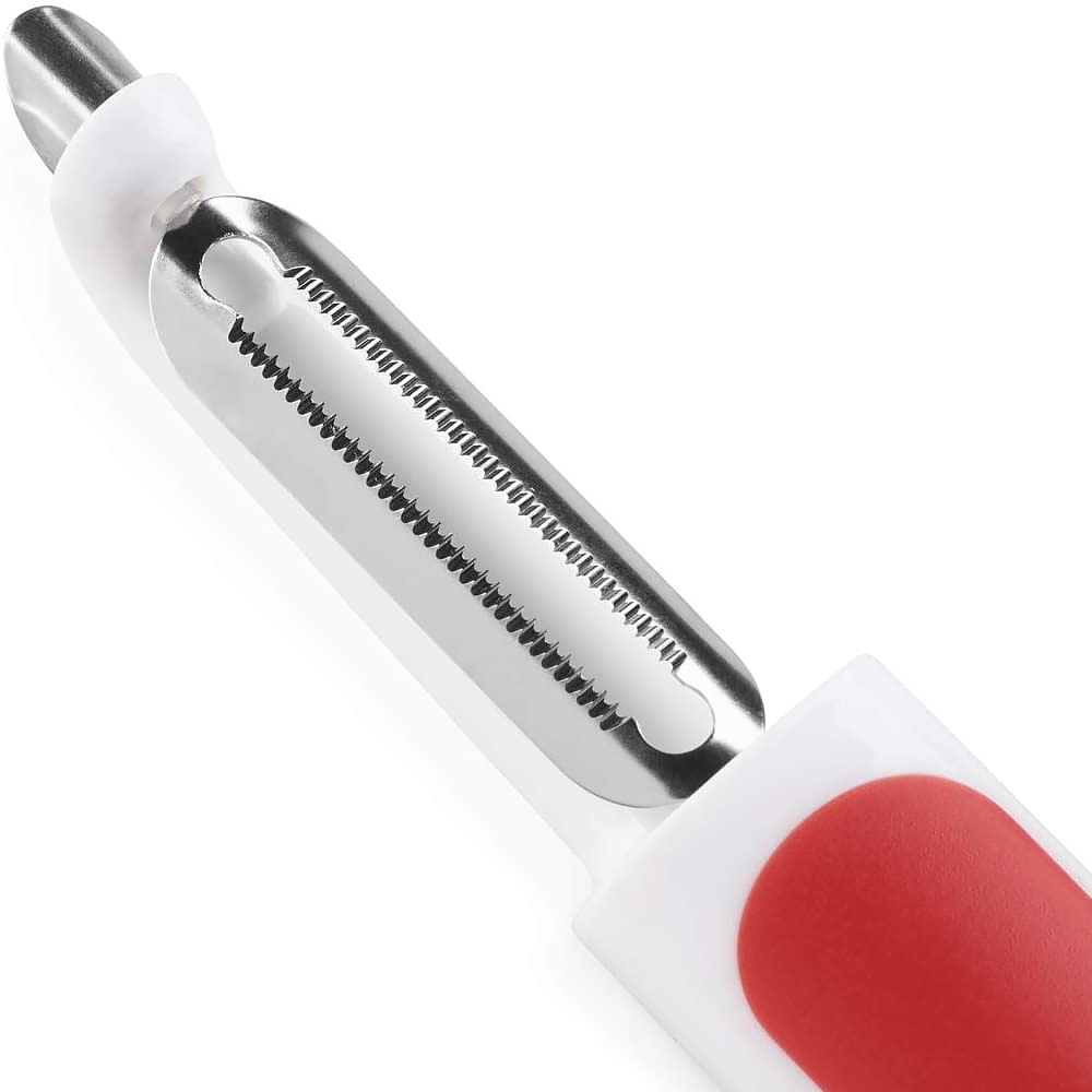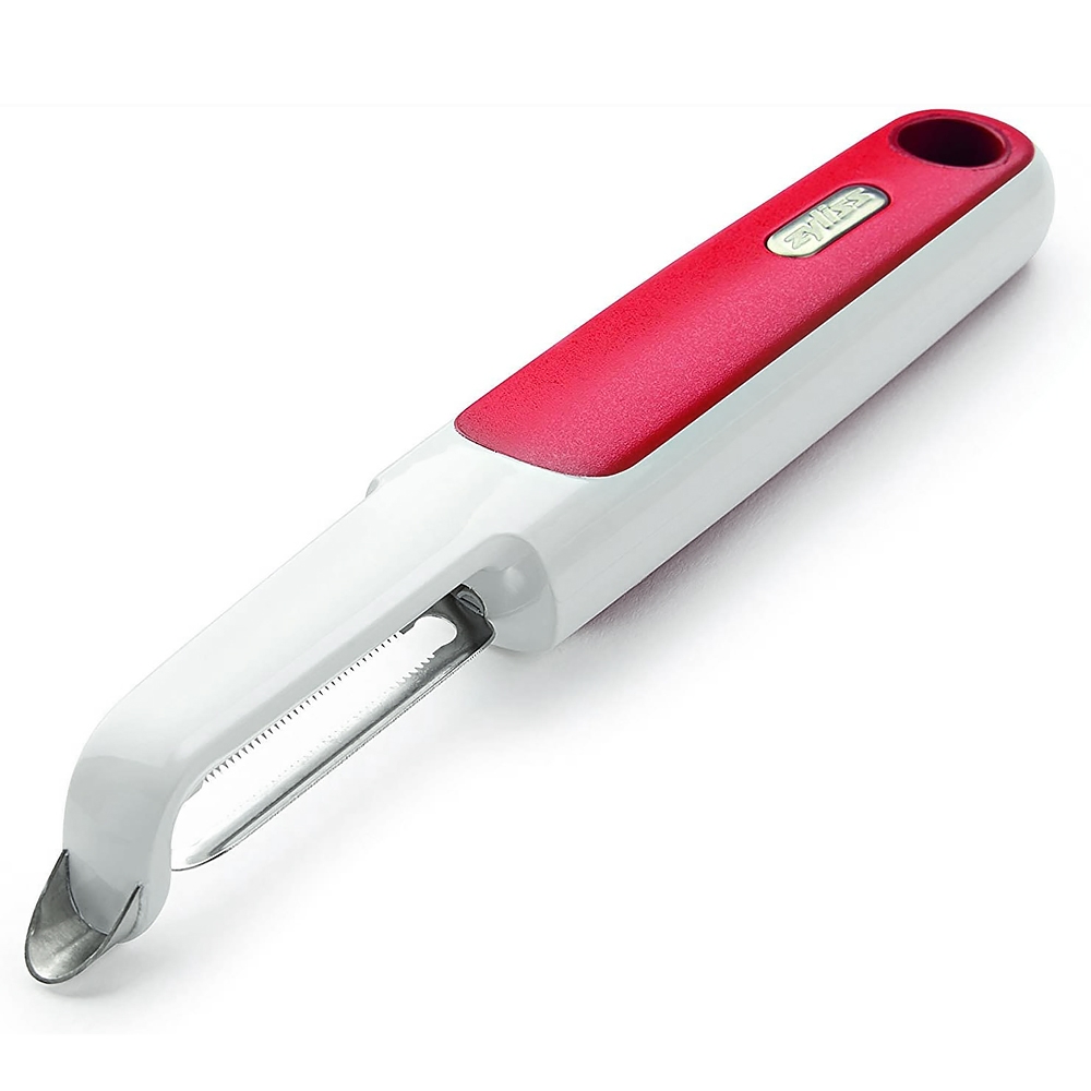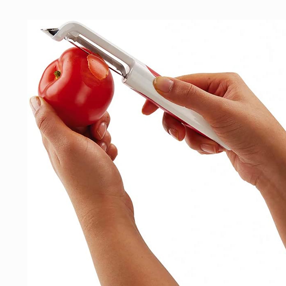 L'éplucheur à tomates Zyliss possède des lames dentelées permettant de peler facilement la peau fine des tomates. Idéal aussi pour le gingembre. Les bords de la lame permettent de peler dans un mouvement de va-et-vient, que l’on soit droitier ou gaucher. Les parties abîmées s’enlèvent facilement à l’aide de la pointe acérée. Garantie 5 ans.