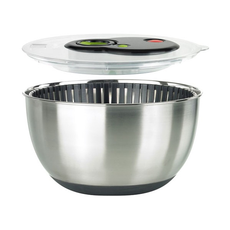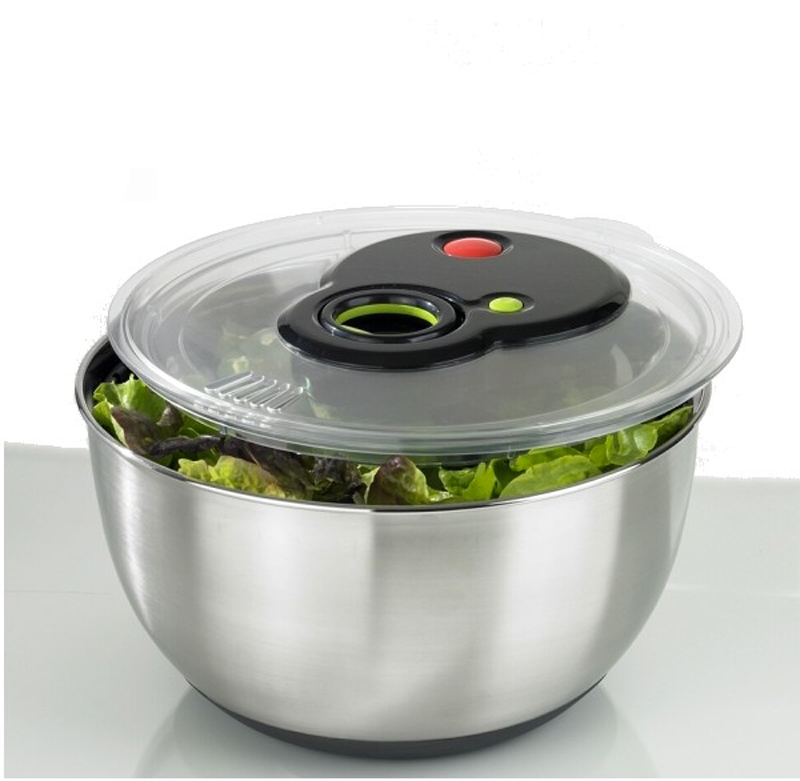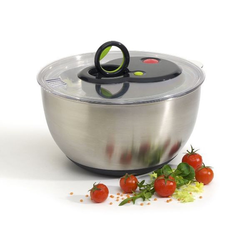 Bol inox. Contenance 4,5 L. Diamètre 26,5 cm. Bouton Turbo pour accélérer la vitesse d’essorage. Base antidérapante. Cordon avec poignée Soft touch. Couvercle transparent. Garantie 5 ans.