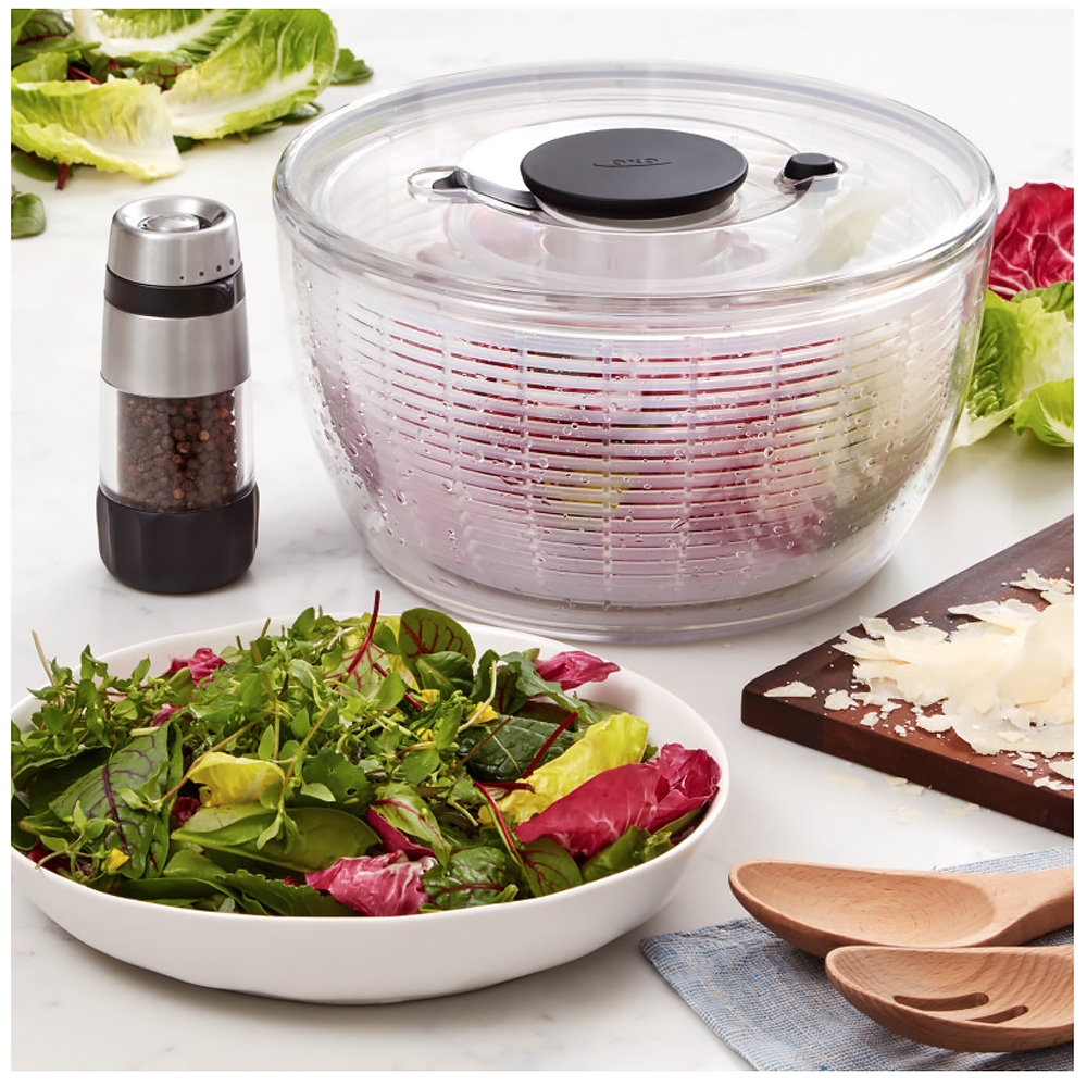 L'essoreuse à salade OXO permet d'essorer votre salade efficacement grâce à son système exclusif d'entraînement par poussoir. Très design, vous pouvez utiliser le saladier transparent pour le service à table !