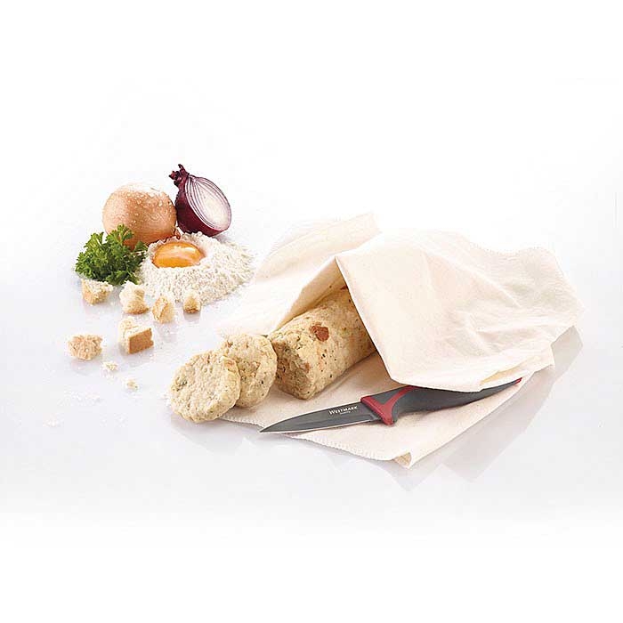 Etamine en coton pur pour presser les fruits, confectionner du fromage, faire des boulettes ou filtrer des liquides. Il est conseillé de laver une fois à 95°C avant la première utilisation.