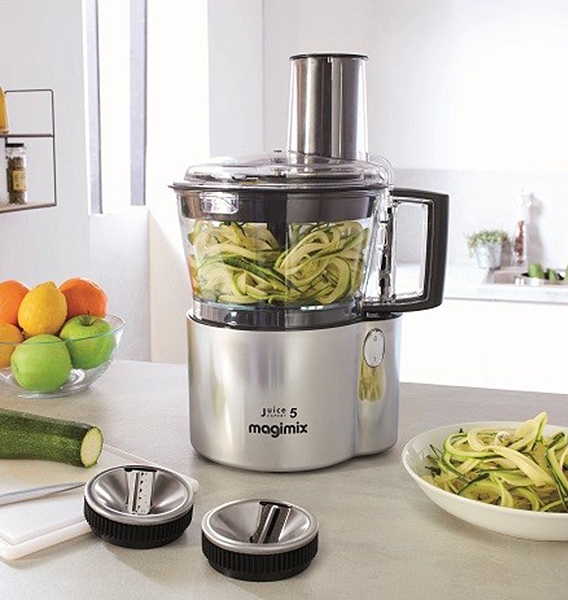 Grâce à des accessoires supplémentaires, l'extracteur de jus Juice Expert 5 Magimix devient l'extracteur le plus polyvalent. encore plus polyvalent. En plus de sa très performante et principale fonction d'extraction de jus, il permet également de râper vos légumes, d'en faire des spaghettis mais également de presser vos fruits préférés.